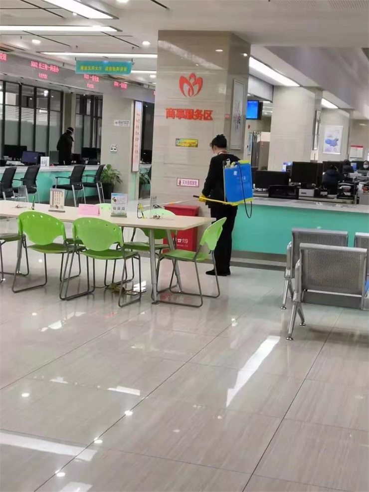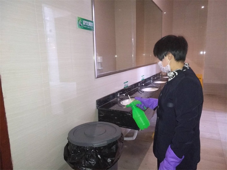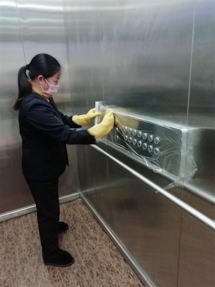 当小伙伴们还在感受被窝的余温时,我们的保洁大姐早已投入工作岗位,对电梯间、楼内通道、门把手等重点部位不留死角地清洁消毒,坚决不给病毒一丁点儿的藏身机会。